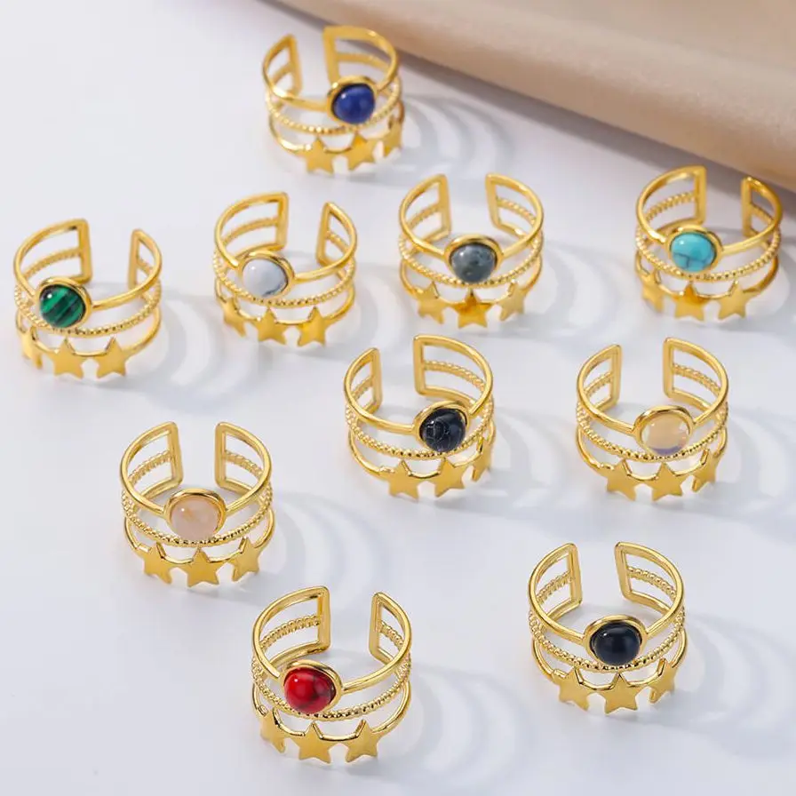 Anéis De Pedra De Opala De Aço Inoxidável Para As Mulheres Banhado A Ouro Sun